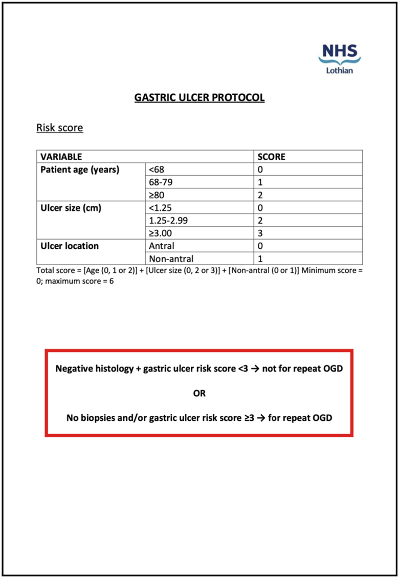 - The NHS Lothian Gastric Ulcer Protocol is a safe and effective method to reduce the burden of repeat OGDs on both patients and on endoscopy units.